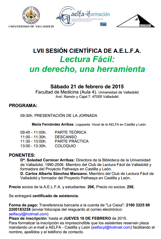 21 de febrero de 2015 JORNADA FORMATIVA. LA LECTURA FÁCIL: UN DERECHO, UNA HERRAMIENTA