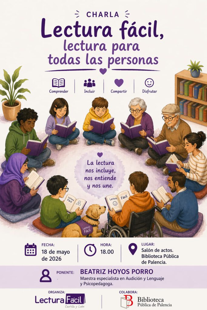 Para celebrar nuestro 13 aniversario y el 40° de la biblioteca pública el próximo 18 de mayo de 2026, el Salón de actos de la Biblioteca Pública de Palencia abrirá sus puertas para acoger la charla titulada "Lectura fácil, lectura para todas las personas".